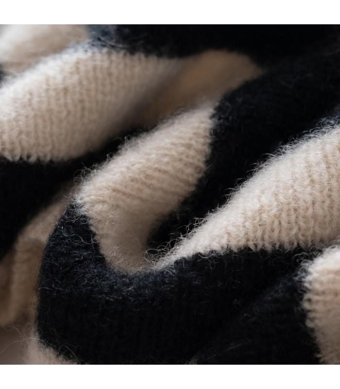 Material and Craftsmanship: This scarf is made from 100% pure cashmere, offering a soft, delicate feel, lightweight warmth, and skin-friendly comfort without irritating the neck. Cashmere is naturally breathable and has excellent heat retention, while also being anti-pilling and durable, ensuring it maintains its smooth and soft texture even after prolonged use.Color-Blocked Stripe Design: The scarf features a color-blocked stripe design, creating a strong visual layering and a fashionable look. The simple yet sophisticated stripe pattern adds vibrancy and is easy to match with various winter outfits, elevating the overall style.Pompon Decoration Details: The pompon decoration at the ends adds a playful and cute touch, highlighting the unique design details and making the scarf more personalized and decorative, while enriching the overall look.Size and Wearing Experience: The scarf is 18cm wide and 122cm long, a moderate size that allows for easy wrapping around the body or casual layering with an outerwear. It provides warmth without being bulky, making it suitable for everyday wear.Versatile and practical: The combination of contrasting stripes and pom-pom embellishments is both practical and decorative, easily paired with coats, down jackets, and knitwear to enhance the highlights and layering of your winter outfits.Suitable occasions and functions: Suitable for daily commutes, casual outings, dates, winter travel, or holiday gatherings. Combining warmth and style, it also makes a great gift choice for friends, lovers, or family.