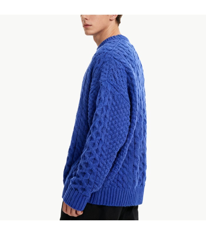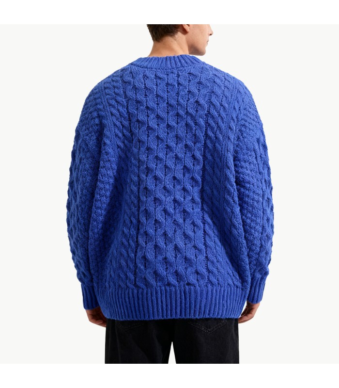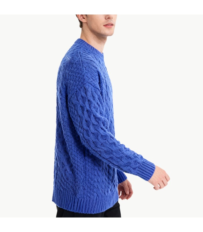 Material and Craftsmanship: This sweater is made from a cotton blend fabric, soft and comfortable to the touch, breathable, and both warm and durable. The fabric undergoes a fine knitting process, making it resistant to deformation and pilling, ensuring it maintains its smooth appearance even after prolonged wear.Crew Neck Design: The classic crew neck design is simple and stylish, easy to wear alone or layered, suitable for pairing with shirts, T-shirts, or turtlenecks, creating a clean and crisp neckline and a casual look.Cable Knit Texture: The overall cable knit pattern adds three-dimensionality and visual depth, making the sweater more textured and stylish. The fine texture showcases the characteristics of hand-knitting craftsmanship.Loose Fit: The loose cut design is comfortable and free, allowing for unrestricted movement, suitable for casual everyday wear or relaxed work settings, easily creating a relaxed and natural look.Solid Color Design: The simple solid color base makes it easy to pair with various bottoms and outerwear, creating a versatile basic style that highlights a low-key and composed masculine temperament.Styling suggestions: Pairs well with jeans, casual pants, or sweatpants. It also works well layered under jackets, trench coats, or wool coats. Suitable for everyday casual wear, lounging at home, or light outdoor activities in autumn and winter.Suitable occasions and functionality: Relaxed and comfortable, soft and soft, suitable for wearing alone or layering in autumn and winter. Versatile scenarios: Suitable for everyday casual wear, the office, home, parties, or light outdoor activities.Care advice: Hand wash or machine wash in cold water is recommended. Avoid high-temperature tumble drying and vigorous rubbing to maintain the softness and texture of the cable knit, extending its lifespan.
