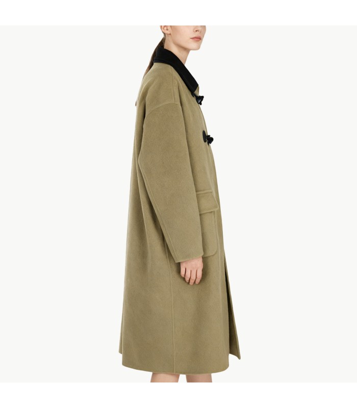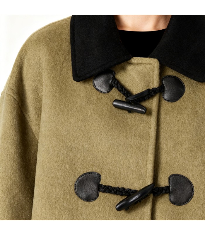Material and Craftsmanship: This women’s wool coat is made of high-quality wool fabric, which is crisp, durable, and has a delicate, comfortable feel. It offers excellent warmth and durability. The thick fabric is suitable for autumn and winter wear, providing all-day warmth.Lapel Design: The color-blocked lapel design is classic and elegant, adding visual depth and a fashionable touch. The lapel design enhances the overall style and improves collar warmth.Toggle Button Decoration: The toggle button design is classic and elegant, adding a detailed highlight to the coat and enhancing its overall fashion and character. The toggle buttons on the placket are both practical and aesthetically pleasing, making it easy to put on and take off.Flap Pocket Design: The flap pockets are both practical and decorative, providing a natural place to rest your hands or store small items, while also adding to the overall layering and design of the coat.Mid-Length Fit: The mid-length design provides good coverage and warmth, elongating the figure and creating an elegant and sophisticated feminine silhouette, balancing fashion and practicality.Color-blocking design: Color-blocking details add a touch of style and personality to the coat, making the overall look more vibrant and visually striking, while highlighting a modern feel.Casual occasions: Pair with jeans, a knit sweater, or a sweatshirt for an easy and warm casual look.Formal occasions: Layer with a shirt or turtleneck sweater, paired with suit pants or a skirt, to showcase a sophisticated and professional style.Winter layering: Layer with a knit sweater or a lightweight down jacket to add depth and warmth.