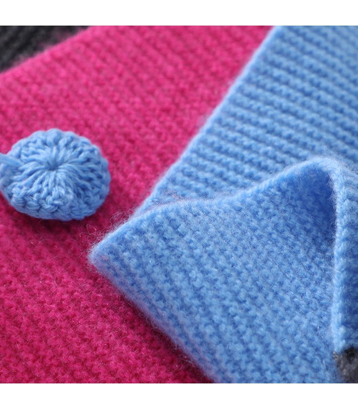 Material and Craftsmanship: This scarf is made from high-quality cashmere, offering a soft, delicate touch, skin-friendly comfort, and excellent warmth. Cashmere is naturally lightweight and breathable, while also being durable and resistant to pilling and deformation. The exquisite knitting craftsmanship ensures the scarf remains soft and shapely even after long-term use.Color-Blocked Hand-Crocheted Design: The scarf features a color-blocked hand-crocheted design, with a unique texture that adds a handcrafted feel and visual depth. The color blocking enriches the overall look, giving the scarf a stylish touch within its simplicity. The delicate hand-crocheted details showcase high-end craftsmanship and quality.Pompon End Decoration: The scarf is adorned with delicate pompon decorations at the ends, adding a playful and lively touch, highlighting thoughtful design details. The pompon echoes the crochet knit, making the overall look more dynamic and layered.Size and Fit: The scarf is 18cm wide and 135cm long, a mid-length design that allows for versatile styling, such as a neck warmer, shawl, or knotted. The width is perfect for everyday wear, ensuring warmth without looking bulky.Suitable occasions and styling: This crochet cashmere scarf combines warmth and style, making it ideal for everyday autumn and winter wear. It can be paired with coats, down jackets, wool coats, and other winter garments to easily elevate your overall look. The exquisite hand-crocheted details and pom-pom design also make it a great gift, a warm present suitable for friends and family, or for both men and women.