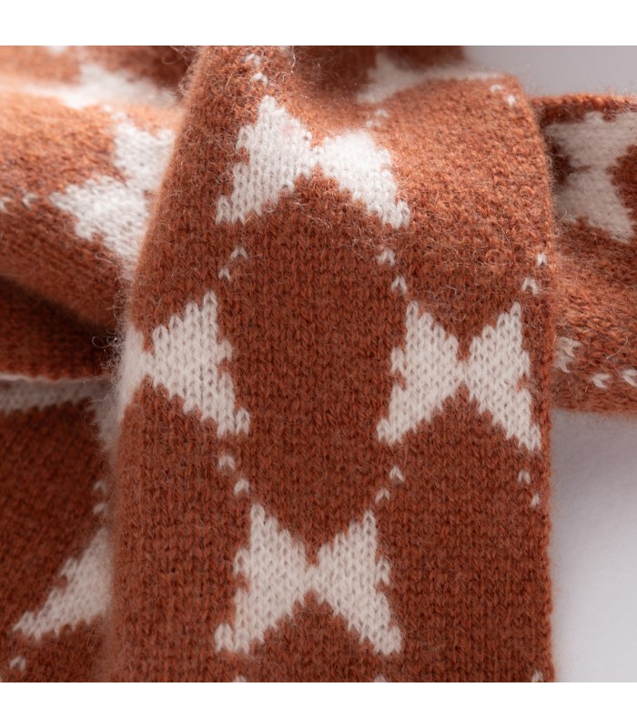 Material and Craftsmanship: Made of high-quality cashmere, this scarf is soft, delicate, and comfortable against the skin. Cashmere is naturally lightweight, provides excellent warmth, and is durable, resistant to pilling and deformation. The fabric undergoes a fine knitting process, resulting in a soft and textured scarf that is comfortable to wear and provides excellent warmth.Diamond Jacquard Design: The scarf features a diamond jacquard pattern, with clear texture and rich layers, adding a touch of fashion and visual interest. The jacquard technique not only enhances the scarf’s texture but also adds a touch of sophistication and elegance to the overall look.Size and Fit: The scarf is 18cm wide and 76cm long. Its short design is lightweight and portable, suitable for everyday wear. The short length is perfect for wrapping around the neck or tying into a small knot, providing warmth while adding a stylish dimension.Suitable Occasions and Styling: Suitable for everyday wear, commuting, casual occasions, or dates in autumn and winter. The simple short style pairs well with coats, sweaters, down jackets, or wool coats, providing warmth while enhancing the overall sophistication of your look. The diamond jacquard pattern adds an elegant touch, making it a warm and practical fashion accessory, and also suitable as a gift.