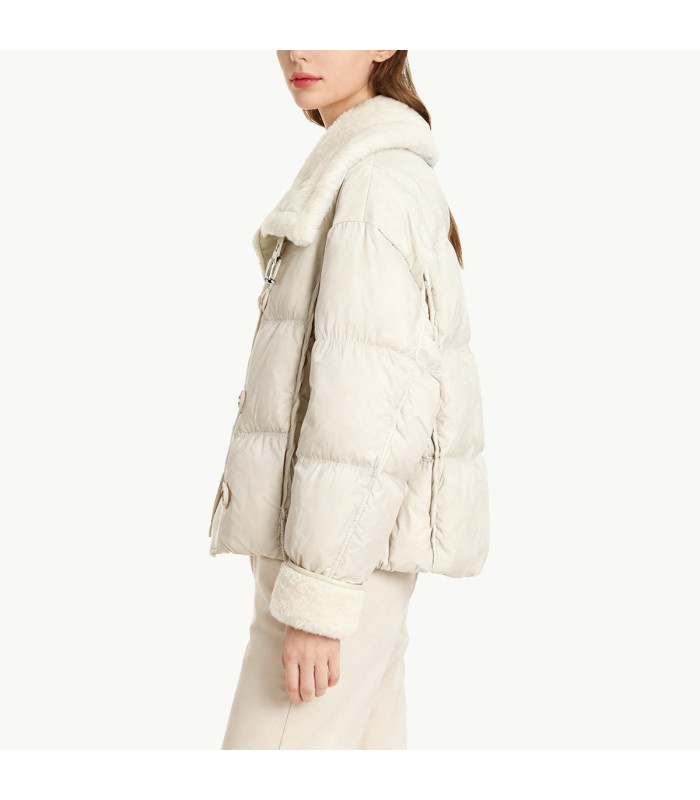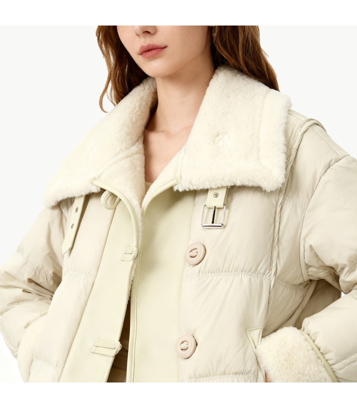 Material and Craftsmanship: This down jacket is made of 100% polyester fiber fabric, which is lightweight, windproof, durable, and easy to clean, ensuring comfort and durability for everyday wear. The interior is filled with high-quality white duck down, offering high loft and excellent warmth retention, providing good heat retention in cold winters. The fabric and filling undergo precision processing, resulting in neat stitching, even down distribution, and resistance to down leakage or sagging, ensuring a lightweight and comfortable feel.Contrasting Design: The large fur collar contrasts with the down jacket fabric, enhancing visual depth and style.High Warmth: The soft, fluffy fur collar is comfortable against the skin and provides extra warmth for the neck, eliminating the need for a scarf in winter.Stylish Enhancement: The large, wide lapel silhouette elevates the overall look, making this down jacket both fashionable and practical.Single-Breasted Placket: The single-breasted design is simple and clean, making it easy to put on and take off while maintaining a clean and streamlined silhouette. The placket design, combined with the down’s loft, is both aesthetically pleasing and warm.Solid Color Design: The solid color down jacket features a contrasting fur collar, creating a simple and elegant look while highlighting the texture and style of the fur collar. It’s easy to pair with various bottoms and shoes, making it a classic and versatile winter outerwear choice.Functionality and Wearing Experience: The down filling provides efficient warmth, and the fabric is windproof and slightly water-repellent, suitable for everyday winter wear. The fur collar adds softness and comfort, ensuring a warm and cozy wearing experience while also offering a trendy visual appeal.