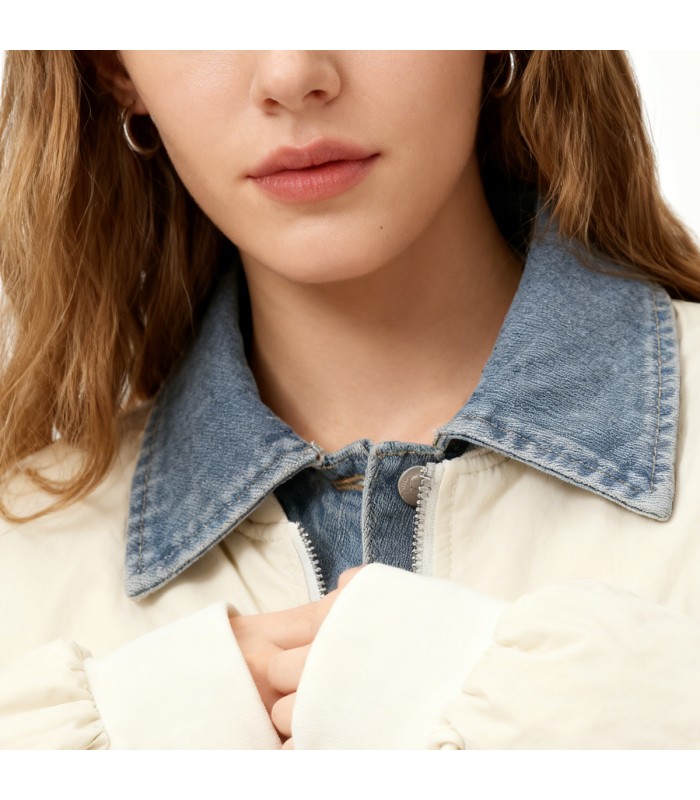 Material and Craftsmanship: This down jacket is made of lightweight and durable fabric, offering windproof, water-repellent, and wrinkle-resistant properties, making it suitable for everyday winter wear. The lining is filled with 90% high-quality white duck down, providing excellent warmth and comfort in cold environments. The entire fabric undergoes a fine processing process, making it resistant to down leakage and deformation, ensuring durability and comfort.Faux Two-Piece Design: The faux two-piece design combines layering and style, visually creating a layered effect. No additional styling is needed, easily adding depth to your outfit. It maintains warmth while adding visual interest and style.Loop Design: The simple and elegant lapel structure conforms to the neckline, effectively protecting against wind and providing warmth, while also enhancing the overall look. The lapel can be layered with a scarf or turtleneck sweater to add depth and sophistication to your winter outfit.Zipper Closure: The smooth and durable zipper closure allows for easy on and off, and provides a secure seal, effectively blocking cold air. The zipper design is clean and sleek, maintaining a neat and sophisticated look while enhancing practicality.Short Cut: The down jacket features a short cut, making it lightweight and flexible, suitable for daily commutes, casual outings, or outdoor activities. The short design accentuates the waistline, avoiding a bulky appearance, and is easy to pair with jeans, casual pants, or skirts, making it versatile and practical.Versatile Style: The overall solid color design is simple and versatile, easily matching various bottoms, shoes, and winter accessories. The combination of a layered look and a lapel collar makes the down jacket both practical and warm, while also adding a touch of urban chic, suitable for daily commutes, casual outings, or winter holidays.