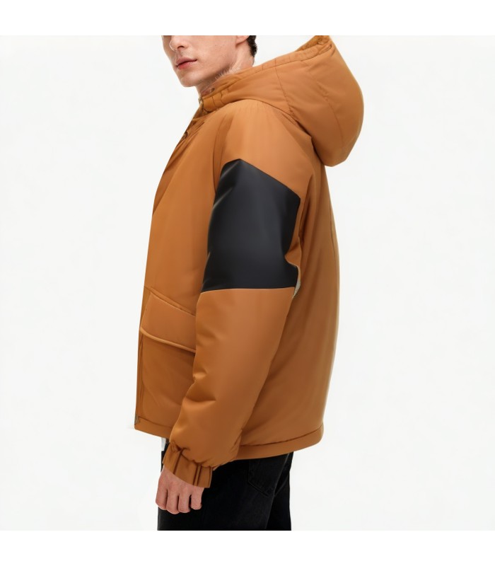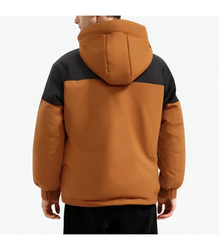 Premium Fabric: Made of 100% polyester fiber, lightweight, durable, abrasion-resistant, and windproof, maintaining the jacket’s crispness and comfort. The soft, smooth fabric offers wind and water resistance while protecting the internal filling, enhancing the wearing experience.Color-Blocked Design: Unique color-blocking design breaks the monotony, adding vibrancy and style. The well-matched colors enhance the overall look, giving the down jacket a blend of casual and urban chic.Stand-Up Collar and Hood Design: The stand-up collar is simple and crisp, fitting snugly around the neck for effective wind protection and warmth. The hood fits snugly around the head, providing all-around protection against the cold wind while adding a casual and sporty style, suitable for outdoor and everyday wear.Adjustable Drawstring Hem: The hem features an adjustable drawstring, allowing you to tighten or loosen it as needed, improving the fit and warmth while creating a slim silhouette and increasing wearing flexibility.Pocket Design:The jacket has two flap pockets for convenient hand warming or storing personal items. The pocket layout is well-designed, balancing practicality and aesthetics to enhance the overall design quality.Comfortable Fit: The classic casual fit conforms to the body without being restrictive, balancing comfort and freedom of movement, suitable for various body types and styling preferences.Combination of Solid and Contrasting Colors: The overall design features a solid color base with contrasting color accents, creating a simple yet stylish look that is versatile and easy to wear, suitable for daily commutes, leisure activities, and outdoor excursions.Suitable Occasions: Ideal for daily commutes, leisure outings, outdoor sports, or keeping warm in cold weather during winter. The stand-up collar and hood design, drawstring hem, and contrasting color elements give this down jacket both functionality and style, making it an indispensable versatile piece in your winter wardrobe.
