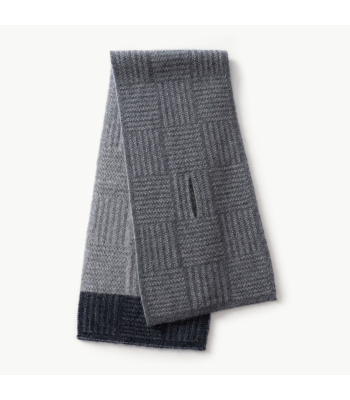 Material and Craftsmanship: This scarf is made of high-quality cashmere, with a soft, delicate touch that is gentle on the skin and provides excellent warmth. Cashmere naturally possesses excellent insulation, is lightweight and breathable, and is also durable and flexible, resisting pilling and deformation even after long-term use. The overall knitting process is exquisite, with a tight and even weave, ensuring the scarf’s comfort and premium feel.Unique Perforation Design: The scarf features a perforation structure, allowing users to easily thread one end of the scarf through the holes for convenient securing. This simple and efficient wearing method prevents the scarf from slipping, extending its warmth. This design combines practicality and style, enhancing the overall look.Short Design: The scarf is approximately 86cm long, a short style that is lightweight and not cumbersome, suitable for daily commutes or short trips. The short design makes it easy to pair with jackets, down jackets, or coats, adding a layered look while also being convenient to store and carry.Color-Blocked Knit: The color-blocked knit design adds visual depth and a fashionable touch. This men’s short cashmere scarf features a simple, solid-color design with contrasting elements, offering a subtle yet striking look. It pairs well with various outerwear and everyday outfits, easily creating casual or business-like styles.Suitable Occasions and Functionality: This men’s short cashmere scarf combines warmth, comfort, and style, making it perfect for autumn and winter wear. Suitable occasions include daily commutes, outdoor activities, dates, winter outings, or holiday trips. Its unique perforated design also makes it an excellent gift, such as for a father, husband, or male friend.