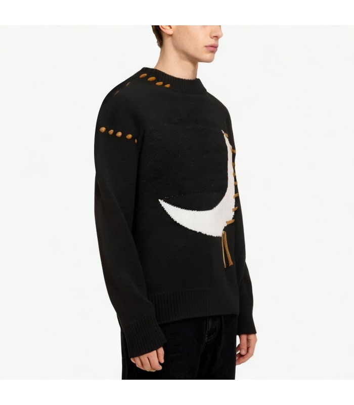 Material and Craftsmanship: This sweater is made from a cotton blend fabric, soft and comfortable to the touch, offering both warmth and breathability. The fabric undergoes fine knitting, ensuring durability and resistance to deformation and pilling. The jacquard knit incorporates a contrasting moon pattern, creating a clear and three-dimensional texture that adds visual depth and a unique design.Crew Neck Design: The classic crew neck design is simple and stylish, easy to put on and take off, and versatile enough to pair with shirts, T-shirts, or turtlenecks. It flatters the neckline and creates a clean and sophisticated casual look.Contrasting Moon Jacquard Texture: The front of the sweater features a contrasting moon jacquard pattern, combined with a three-dimensional knitting technique, enhancing visual interest and design while highlighting individuality and style. The fine jacquard texture showcases high-quality knitting craftsmanship.Loose Fit: The relaxed fit design is comfortable and natural, allowing for unrestricted movement, suitable for everyday casual wear, lounging at home, or light outdoor activities.Versatile Solid Color Base: The basic color is simple and versatile, easily paired with various bottoms and outerwear, such as jeans, casual pants, or jackets, to create a layered look.Styling Suggestions: Pair with jeans, casual pants, or sweatpants, and layer with outerwear such as jackets, trench coats, or wool coats for an effortlessly layered autumn/winter style. The contrasting moon pattern adds a playful touch and highlights the outfit.Suitable Occasions and Functionality: Relaxed and casual, soft and warm, suitable for wearing alone or layering in autumn and winter. Suitable for: everyday casual wear, office, parties, home, outdoor activities, or casual sports.Care Instructions: Hand wash or machine wash in cold water is recommended. Avoid high-temperature tumble drying or vigorous rubbing to maintain the sweater’s softness, the jacquard pattern’s three-dimensionality, and the fabric’s durability.