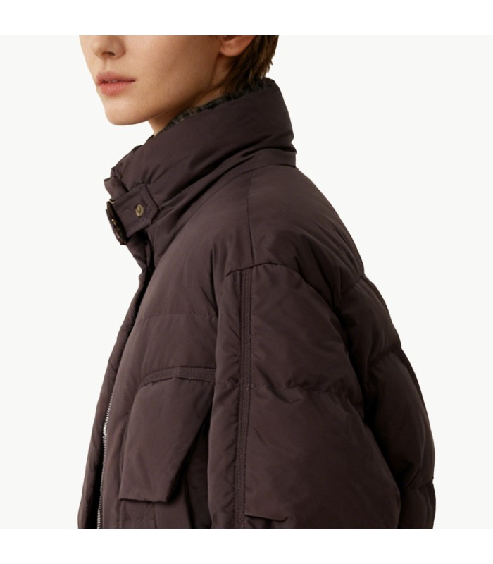 Material and Craftsmanship: This reversible down jacket uses nylon fabric as the outer layer, which is lightweight, durable, windproof, and has some water-repellent properties, making it suitable for various winter occasions. The inner lining is filled with high-quality white duck down, which is highly fluffy, lightweight, and provides excellent warmth in cold weather. The overall craftsmanship is meticulous, with even stitching to prevent down leakage. The reversible design also ensures stability and durability on both sides, extending its lifespan.Stand-Up Collar Design: The stand-up collar effectively enhances neck warmth, blocking cold winds while presenting a clean and crisp silhouette. Compared to traditional turn-down collars, stand-up collars are more practical and have greater outdoor functionality, making them ideal for winter commutes or outdoor activities.Reversible Design: The biggest highlight of this down jacket is its reversible design: the outer side presents a simple, stylish, and easy-to-match look; the inner side features a classic plaid lining, offering a more sophisticated and retro visual effect when worn alone. Switch between two styles effortlessly, one jacket equals two, greatly enhancing styling flexibility and cost-effectiveness, and reducing the hassle of choosing what to wear.Plaid Lining Design:The lining features a distinctive plaid pattern, visually warm and textured, showcasing an artistic and British style. When worn as an outer layer, it offers greater fashion appeal, enriching the overall look.Zipper Closure: Features a smooth and durable full-zip closure for easy on and off, and a secure closure. The zipper design ensures that cold wind cannot penetrate while maintaining a clean and sleek appearance, preserving the structural lines of the down jacket.Practical Pocket Design: Includes hand pockets on both sides, ensuring practicality regardless of which side you wear the jacket on. The pockets are reasonably deep, conveniently storing small items such as phones, wallets, and keys, and can also be used to keep hands warm in cold weather, enhancing practicality.Short Fit: The short cut allows for flexible movement without being bulky, suitable for daily commutes, driving, school, outdoor activities, and other scenarios. The cropped length makes the waistline more defined and also makes it easier to layer with various sweaters or innerwear.