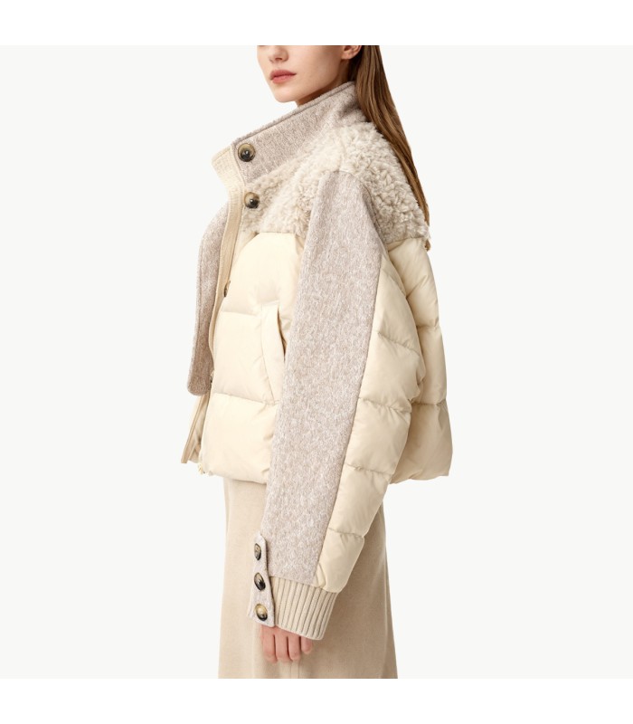 Material and Craftsmanship: This short down jacket is made of high-quality fabric, lightweight, durable, windproof, and easy to care for. The interior is filled with evenly distributed down or high-elastic cotton (filling can be adjusted according to the product), providing excellent warmth and keeping the jacket lightweight and warm in cold weather. Neat stitching ensures the jacket remains fluffy and doesn’t collapse, resulting in a smooth overall texture and comfortable wear.Stand-up Collar Design: The simple and clean stand-up collar design effectively blocks wind and keeps the neck warm. The stand-up collar enhances the overall style, making the short down jacket look more sophisticated and modern, while also allowing for easy layering with scarves and sweaters.Color Blocking: The jacket features a color-blocking design, enriching the visual layers and adding a fashionable highlight. The contrasting colors make the overall look more individual and vibrant, while maintaining the versatility of a short down jacket.Short Cut: The short, tailored cut is clean and streamlined, enhancing freedom of movement while naturally elongating the legs. The short design pairs well with various bottoms, such as high-waisted trousers, skirts, and casual pants, balancing style and practicality.Zipper Closure: The front features a smooth zipper closure for easy on and off, ensuring a secure and windproof fit. The zipper’s simple and modern design complements the overall short, stand-up collar style, increasing the down jacket’s practicality.Button Decoration at Cuffs: Button decorations at the cuffs not only add a touch of elegance but also allow for adjustment of the cuff’s tightness, enhancing windproof and warmth retention. These button details add a touch of sophistication and design flair to the garment.
