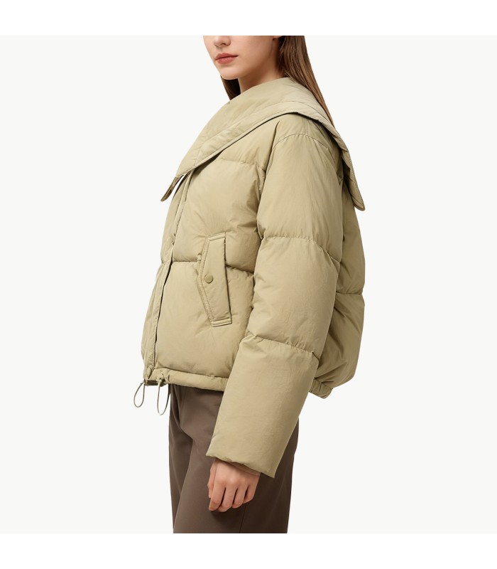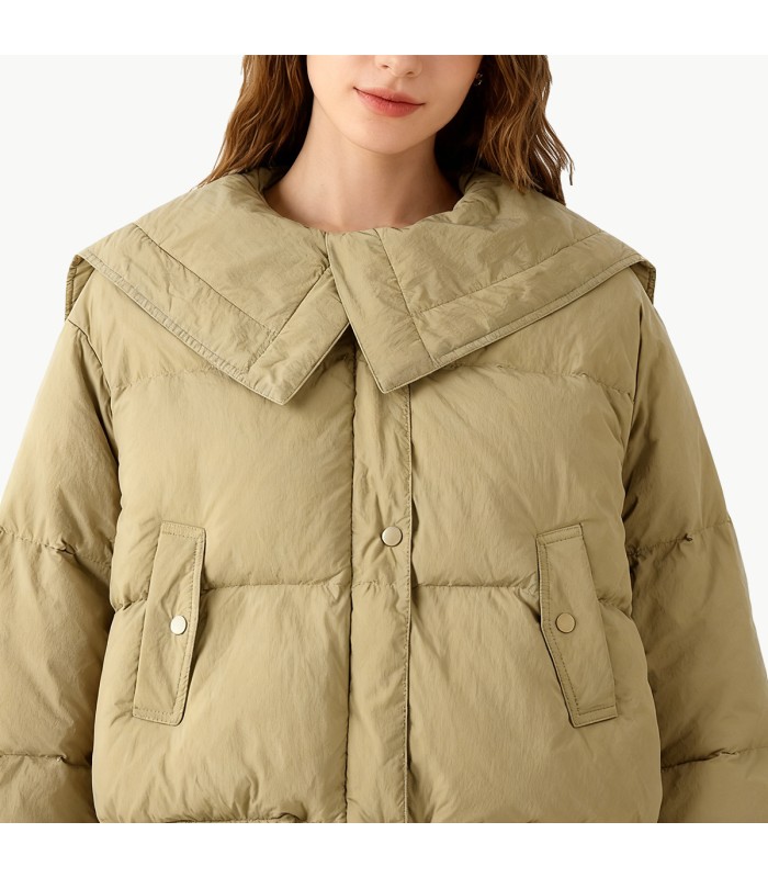 Material and Craftsmanship: This down jacket is made of polyester fiber fabric, which is lightweight, durable, windproof, and wrinkle-resistant, making it suitable for frequent everyday winter wear. The interior is filled with high-quality duck down, which is highly fluffy, lightweight, and provides excellent warmth, offering a comfortable experience in cold weather. Both the fabric and down filling undergo meticulous processing, making them resistant to down leakage and deformation, ensuring durability and comfort.Lapel Design: The down jacket features a classic lapel design with clean, crisp lines, enhancing neck warmth. The lapel design combines decorative and functional elements, and can be paired with sweaters, turtlenecks, or scarves to add layers to the look and enhance overall style.Zipper Closure: The placket features a smooth and durable zipper design, making it easy to put on and take off. It also provides a good seal, effectively blocking cold air. The clean lines of the zipper maintain a sleek and sophisticated look, enhancing the down jacket’s practicality.Practical Slanted Pockets: Slanted pockets on both sides allow for easy hand insertion for warmth, and can also be used to store small everyday items such as phones, keys, and gloves. The pocket design coordinates with the overall silhouette, being both practical and maintaining the garment’s aesthetic appeal.Short Cut: The down jacket features a short cut that neatly fits the waist, enhancing the visual waistline and avoiding a bulky look. The short design allows for freedom of movement, suitable for commuting, daily outings, and casual occasions, while remaining lightweight and warm. It pairs well with various bottoms such as jeans, casual pants, or skirts.Solid Color Style: The overall solid color design is simple and elegant, easily matching various trousers, shoes, and winter accessories. The versatile solid color style is suitable for commuting, daily wear, casual outings, or travel, offering both practicality and a sophisticated feel, making it an indispensable basic down jacket in your winter wardrobe.