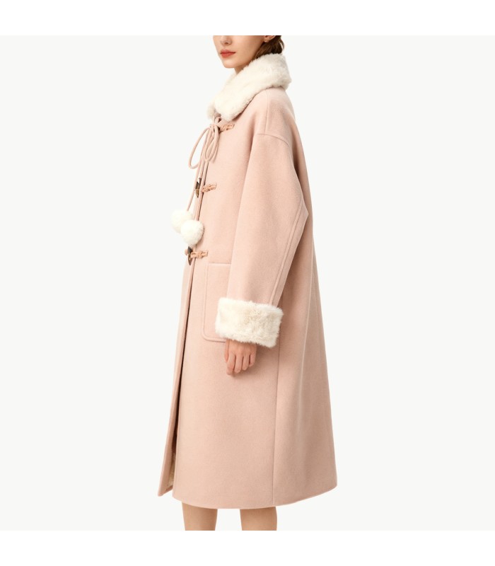 Material and Craftsmanship: This women’s coat is made from high-quality wool fabric, thick and structured, durable and wear-resistant, while also offering a soft touch and excellent warmth. The plush collar and cuffs enhance warmth and comfort, keeping the wearer soft and warm in the cold winter.Fur Collar Design: The plush collar is elegant and stylish, adding a sense of layering to the overall look while providing extra warmth to the neck. The soft texture of the plush collar adds a touch of luxury and femininity to the coat.Toggle Button Placket: The toggle button design is retro and sophisticated, adding a detail to the coat while also being practical, making it easy to put on and take off, and enhancing the overall style.Fur Plush Cuff Design: The plush cuffs enhance warmth and add texture and layering to the overall coat, making the look softer and warmer.Hand Pocket Design: Two hand pockets are practical and convenient, allowing you to hold small items or simply rest your hands naturally, while also adding to the coat’s layering and decorative appeal.Mid-length silhouette: The mid-length design provides excellent coverage and warmth, elongating the figure and creating an elegant and sophisticated feminine silhouette, while also balancing practicality and style.Casual occasions: Pair with a knit sweater, jeans, or casual trousers for a warm and comfortable everyday look.Formal occasions: Layer with a shirt or turtleneck sweater, paired with dress pants or a skirt for a polished and elegant style.Winter layering: Layer a sweater or lightweight down jacket under a coat for added depth and warmth.