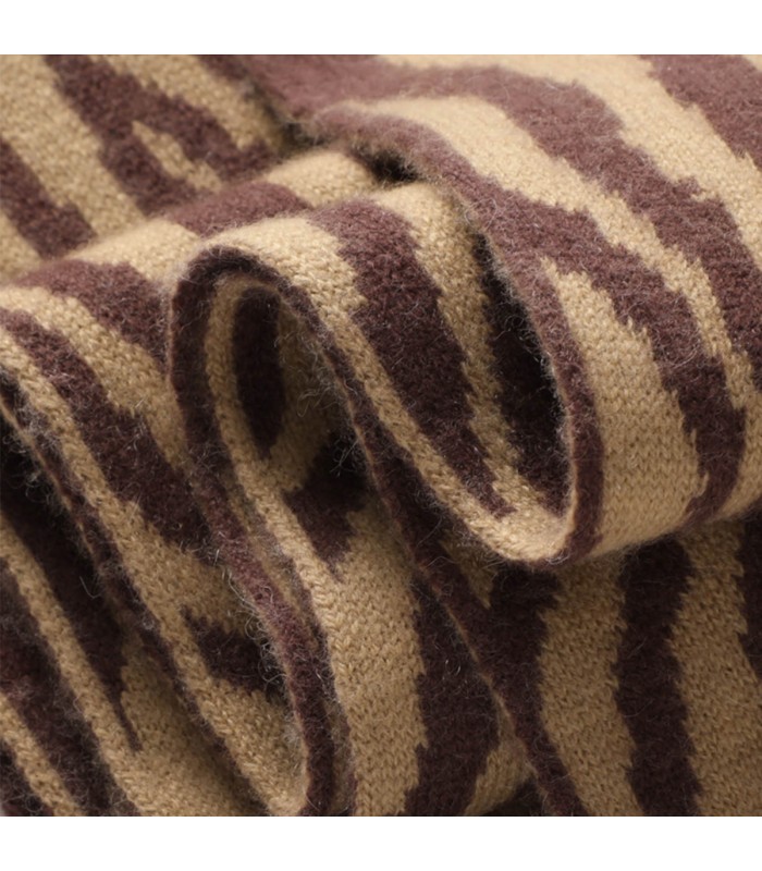 Material and Craftsmanship: This scarf is made of high-quality cashmere, with a soft and delicate touch, comfortable against the skin, and non-irritating, combining lightweight design with excellent warmth. Cashmere is naturally breathable, keeping you warm without feeling stuffy in winter, while also being pill-resistant and durable, ensuring it remains smooth and soft even after prolonged use.Zebra Print Knit Design: The unique zebra print design adds visual depth and a fashionable touch, easily creating a personalized look. The fine knitting process creates a strong three-dimensional texture, enhancing the overall quality and combining decorative and practical functions.Size and Fit: The scarf is 27cm wide and 180cm long, suitable for wrapping around the body or layering, providing excellent warmth. The moderate width and length ratio allows it to cover the neck for warmth while also being versatile enough to match various outerwear styles.Soft and Comfortable: The cashmere fabric is soft and smooth, comfortable against the skin, and will not cause itching even when placed directly against the neck. The lightweight and soft texture makes the wearing experience more comfortable, balancing warmth and comfort in winter.Versatile and Stylish: The classic black and white zebra print design is easy to match, pairing well with coats, down jackets, knitwear, or trench coats to effortlessly elevate the overall look with style and sophistication.Suitable Occasions and Functionality: Ideal for daily commutes, casual outings, dates, winter travel, and holiday gatherings. A zebra-print scarf is not only practical and warm but also a stylish statement piece, easily showcasing a unique and fashionable style, making it an excellent gift choice.